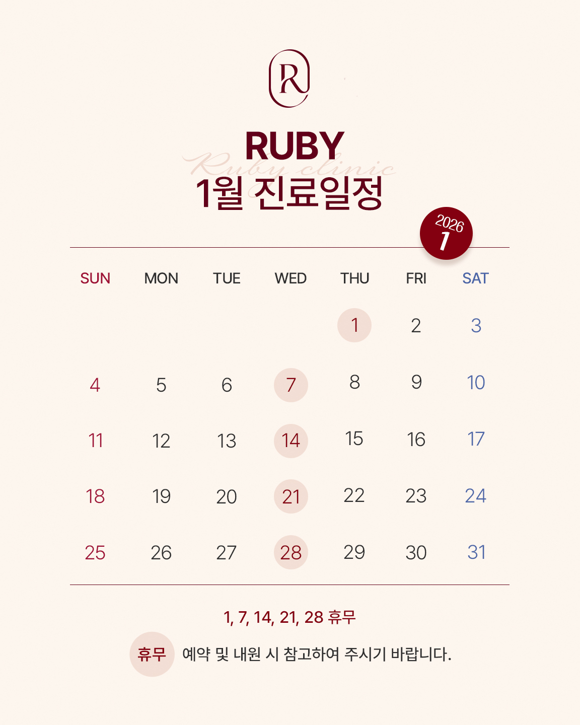 수,일요일 : 고정휴무