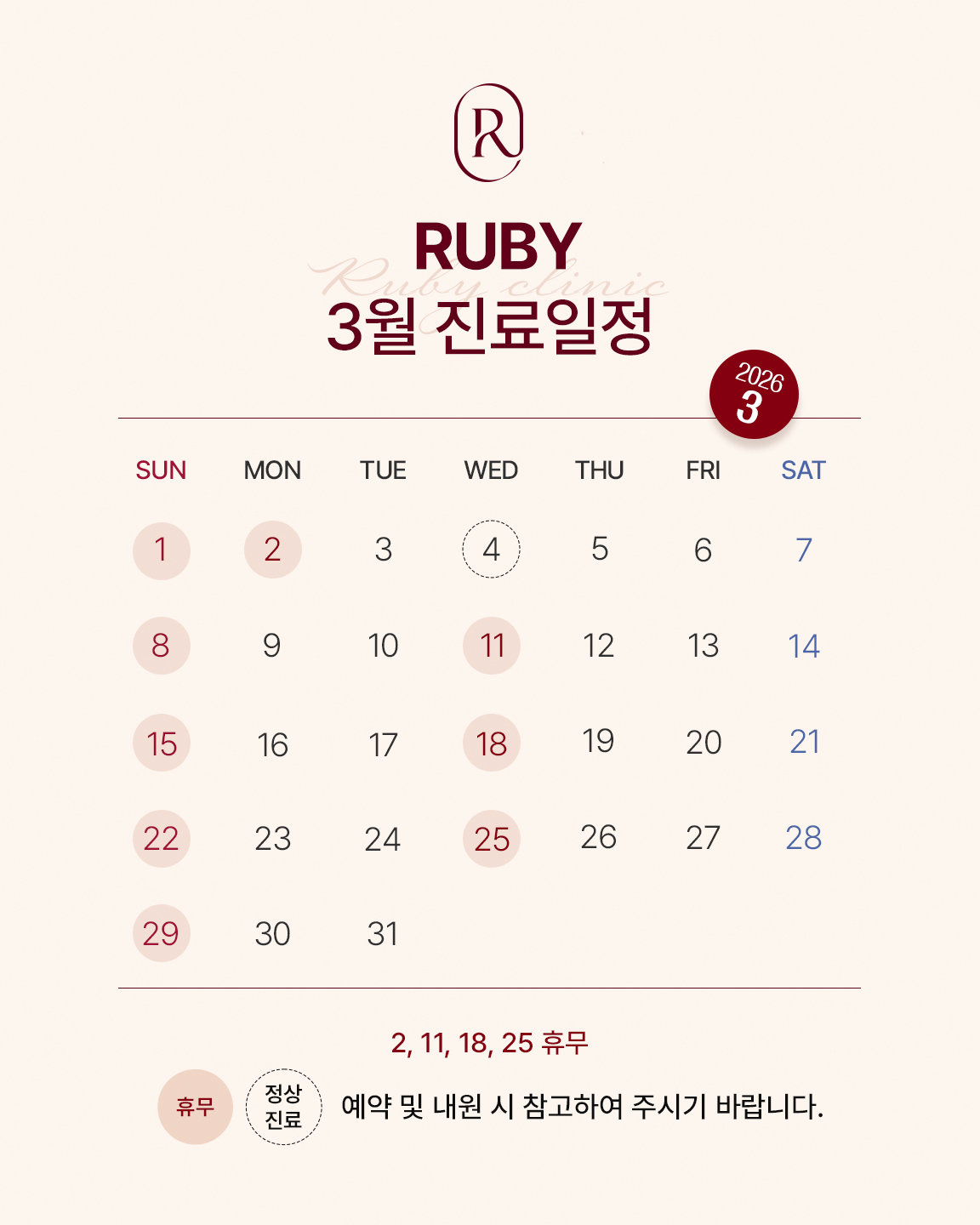 수,일요일 : 고정휴무